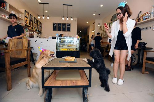 南宁女子到专门宠物餐厅为爱犬过生日 网友:高大上